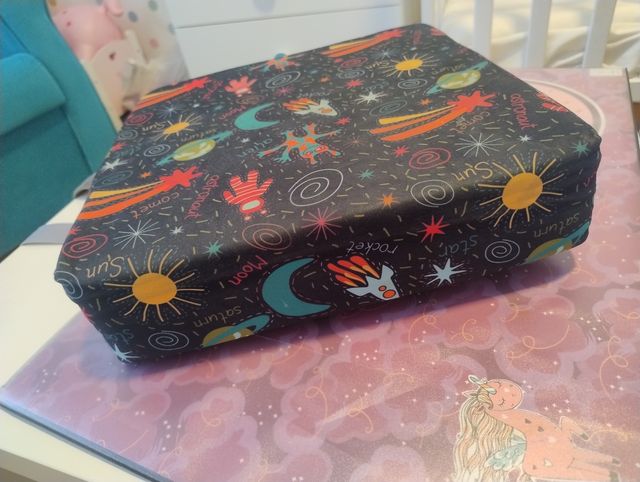 Detalles del productoSe vende elevador de silla para niños, con estampado espacial. Está en muy buen estado.