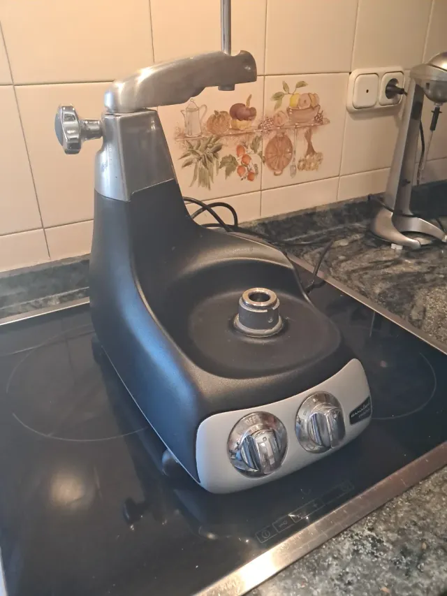 Viene con todos su accesorios originales. El único desperfecto es que un brazo de la batidora está desgastado y no funciona bien. Se puede conseguir recambio. Por lo demás la amasadora funciona perfectamente Medidas del producto