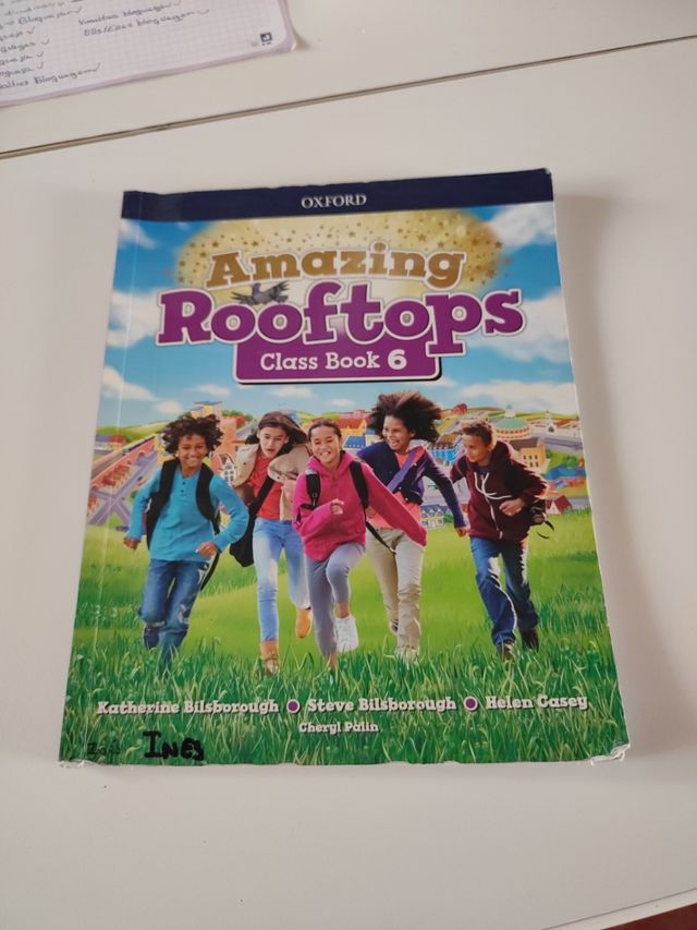 Amazing rooftops class book 6 primària, desgaste per transport en motxilla, primers exercics a llapis.