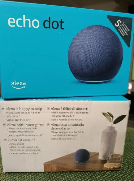 Detalles del productoAltavoz inteligente Amazon Echo Dot de 5a generación en color azul. El producto se encuentra precintado, sin abrir. Se acompaña de copia de ticket de compra reciente en comercio español para la gestión de la garantía.