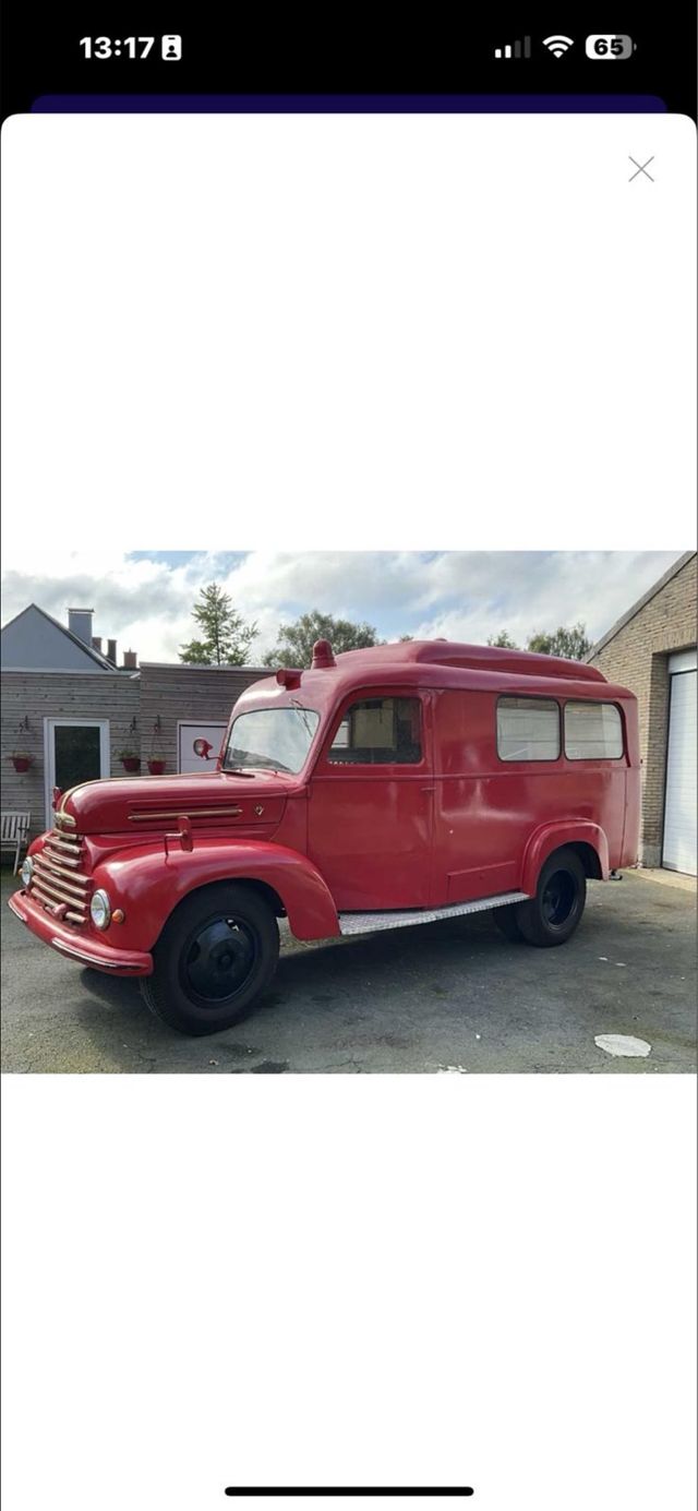 Detalles del productoVehículo clásico tipo ambulancia del año 1954. Un modelo con un diseño distintivo y un color rojo vibrante.