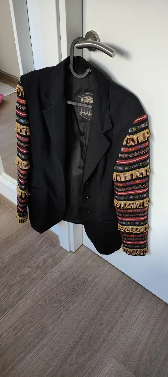 Americana negra con mangas multicolor