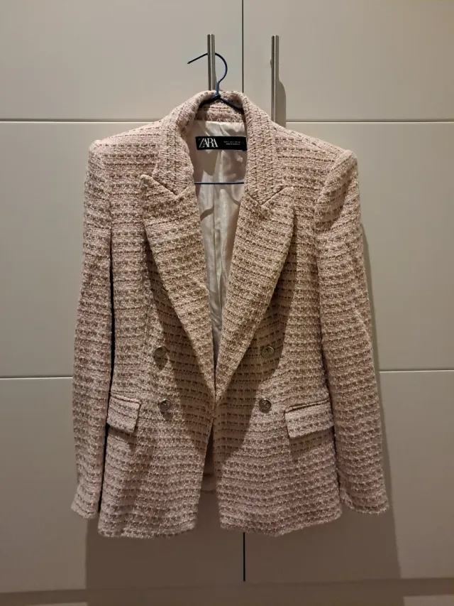 Americana Zara tweed rosa y beige