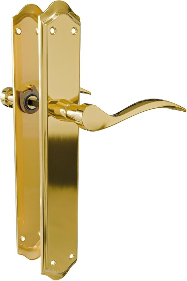 Juego de manillas para puertas interiores y de entrada, fabricado en acero con acabado latón mate. Ideal para mejorar seguridad y estética en hogares con diseño moderno y elegante. LPNWE292543872 - DER.278