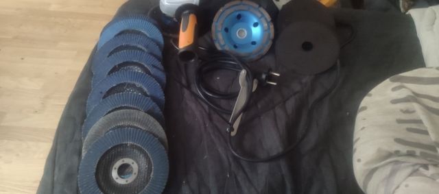Detalles del productoVendo amoladora angular en buen estado, lista para usar. Incluye 11 discos de diferentes grosores. La amoladora se ve robusta y los discosson nuevos de 125 mm