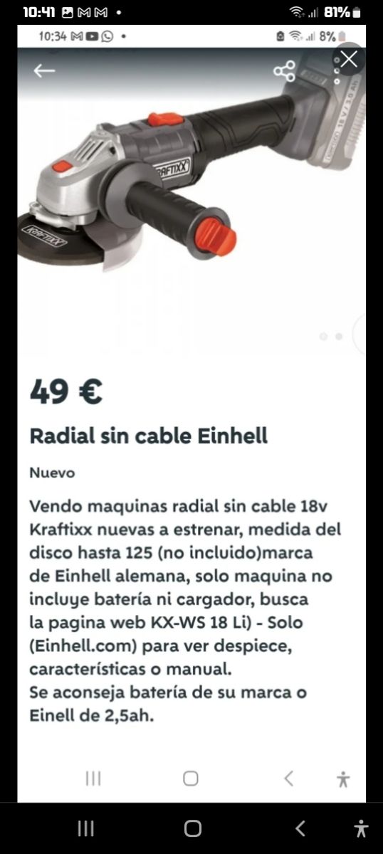 Detalles del productoRadial sin cable Kraftixx (Einhell) 18v, nueva a estrenar. Ideal para trabajos de bricolaje.