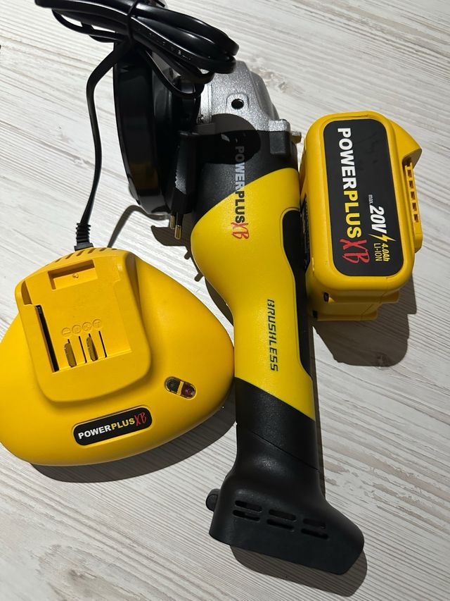 Detalles del productoVendo amoladora angular inalámbrica Powerplus XB de 20V. Está en muy buen estado y se incluye cargador y batería.