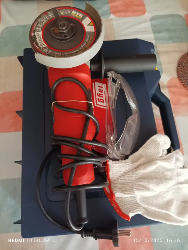 Amoladora angular Tayg en buen estado, lista para usar. - Incluye disco de corte. - Protector de seguridad. - Guantes de protección. - Caja de transporte.
