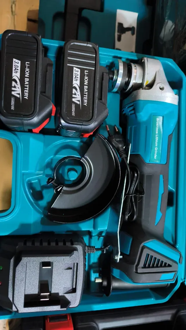 Detalles del productoAmoladora angular inalámbrica con dos baterías de litio de 21V y 3.0Ah.
