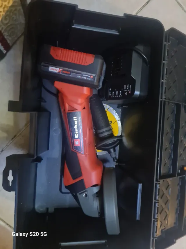 Amoladora radial Einhell de la línea Power X-Change. - Incluye batería de 18V y cargador. - Disco de corte. - Maletín de transporte.