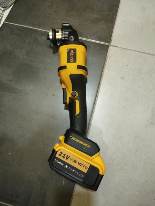 Detalles del productoAmoladora radial inalámbrica de la marca WZTO, ideal para trabajos de corte y desbaste.