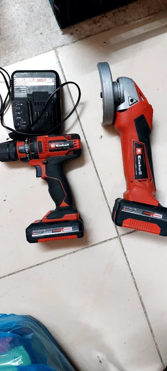 Detalles del productoSe vende lote de herramientas eléctricas Einhell, compuesto por una amoladora angular y un taladro , ambos funcionan con baterías. NO ENVIO