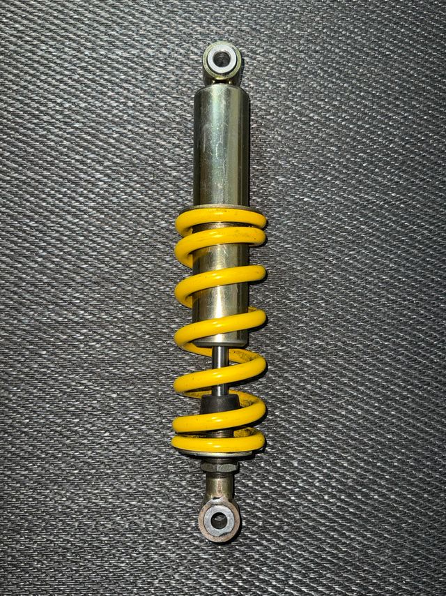 Amortiguador de 35cm con muelle amarillo. Válido para ciclomotor 49cc. #derbi #rieju #beta - Muelle de color amarillo. - Cuerpo metálico.
