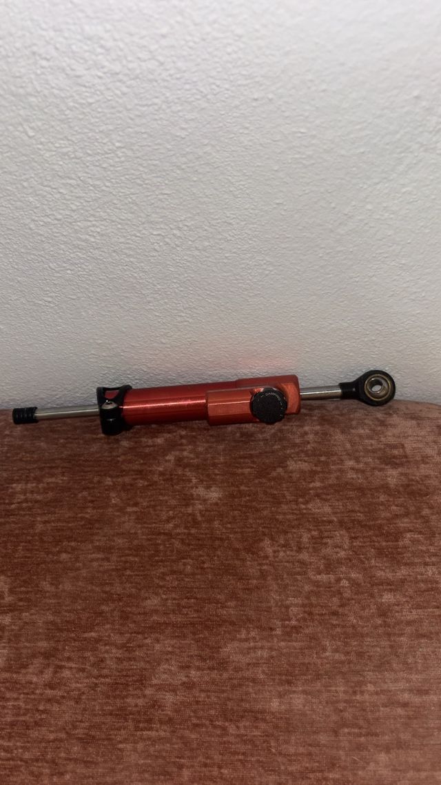 Detalles del productoAmortiguador de dirección en color naranja, también conocido como dumper.