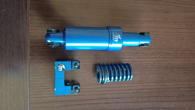 Detalles del productoamortiguador monorim azul con sus dos muelles. El mas blando y el mas duro y
