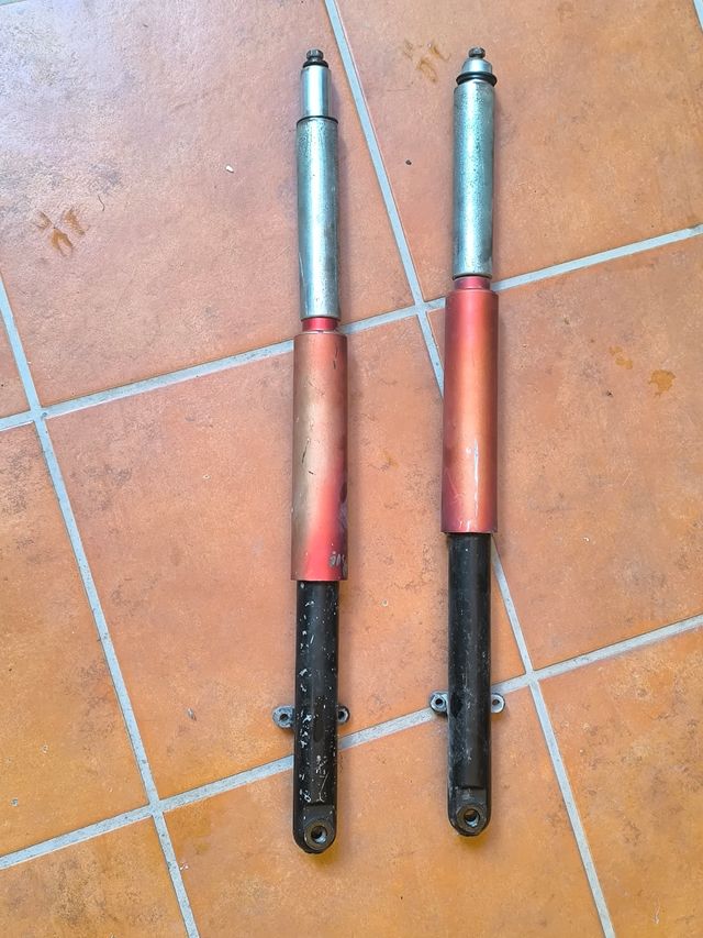 Se venden amortiguadores delanteros para Vespino SC. Color rojo Usados pero como nuevos y los guarda porvos plateados incluidos