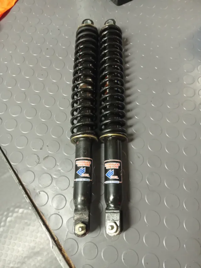 Pareja de amortiguadores originales para Derbi Variant Start. Listos para instalar. - Sistema hidráulico. - Fabricados en España.