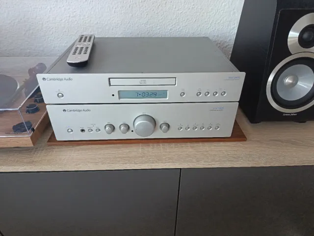 Amplificador Cambridge Audio Azur A540 en color plata.