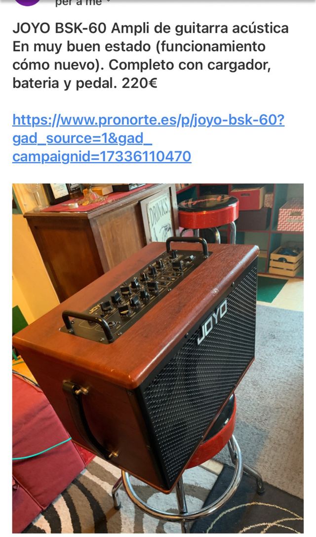 Amplificador de guitarra acústica JOYO BSK-60 en muy buen estado, como nuevo. Incluye cargador, batería y pedal.