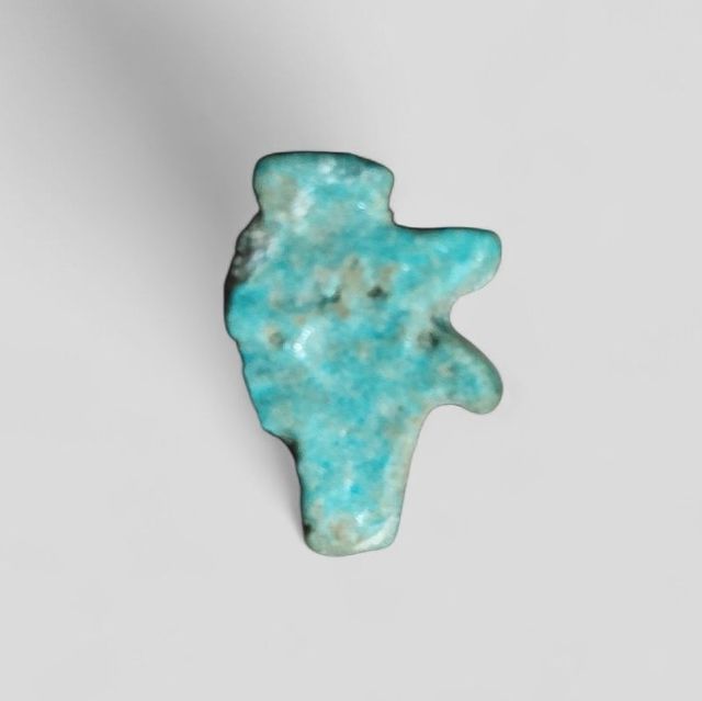 Detalles del productoPieza arqueológica auténtica: Udjat egipcio tallado en fayenza turquesa, datado en el siglo III a.C. Representa el Ojo de Horus, símbolo de protección, salud y poder divino en el Antiguo Egipto.