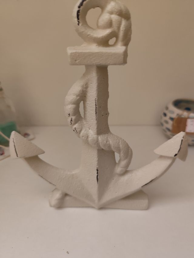 Bonita ancla decorativa de estilo náutico. Ideal para dar un toque marinero a cualquier estancia. - Material: Metal fundido. - Color: Blanco con detalles desgastados.