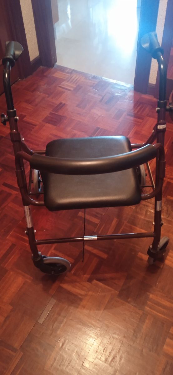 Detalles del productoAndador con asiento acolchado. Es plegable y fácil de transportar. Dispone de cesta. Con freno al sentarse.