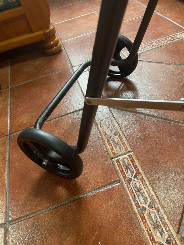 Andador con ruedas para facilitar la movilidad. - Estructura metálica. - Ruedas negras.