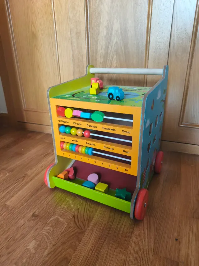 Detalles del productoAndador de madera con múltiples actividades para el desarrollo infantil. Ideal para que los más pequeños aprendan y se diviertan.