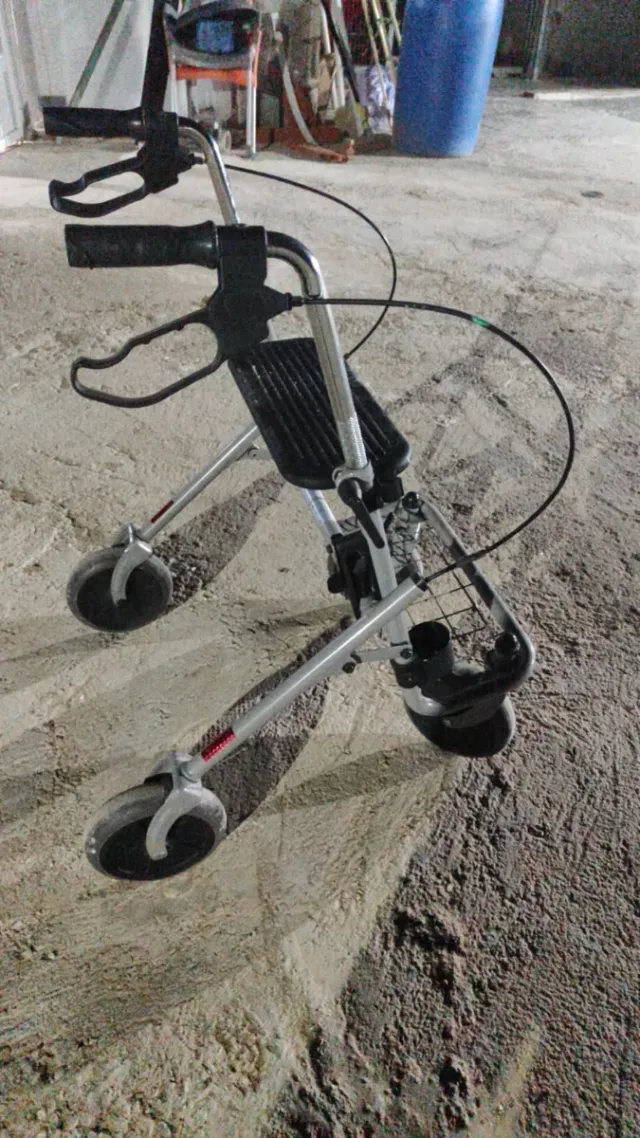Andador ligero y fácil de usar, ideal para personas que necesitan apoyo adicional. - Estructura de metal plateado. - Empuñaduras negras. - Ruedas para facilitar el movimiento.