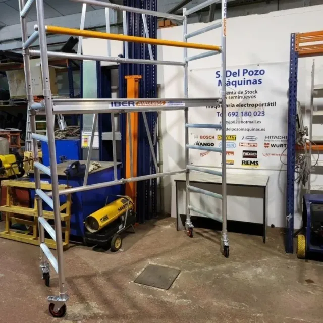 Detalles del productoandamio nuevo aluminio homologado reforzado, nuevo a estrenar,rodante plegable,barra 50mm,anchura cuerpo 70,plataforma con trampilla 1,90,para altura de trabajo 3,80m, similar a termiser, altrex, layher,wurth, svelt,instand, precio más iva .