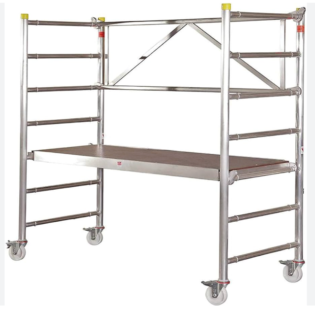 Detalles del productoAndamio de aluminio, ideal para trabajos en altura. Es fácil de montar y desmontar. Tiene bastante uso y alguna pieza que le falta.