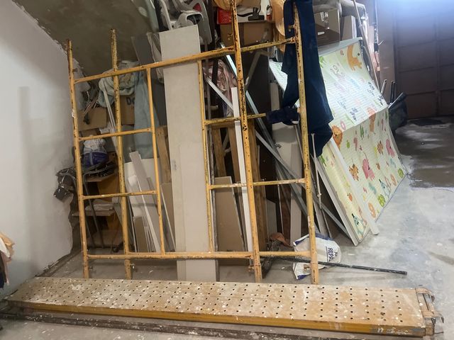 Andamio metálico de color amarillo, ideal para trabajos en altura. Se encuentra en buen estado. - Estructura robusta. - Plataforma con perforaciones.