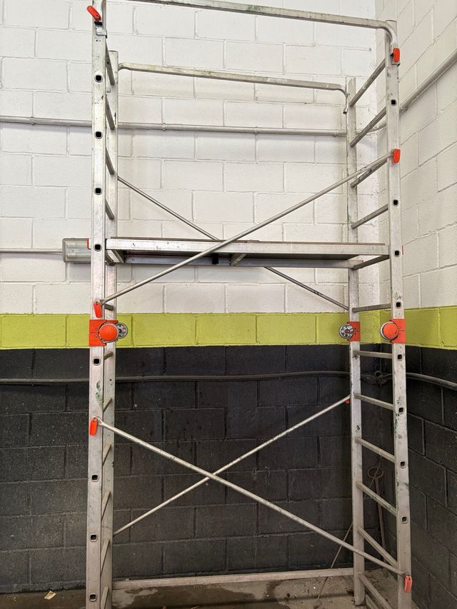 Detalles del productoAndamio metálico de aproximadamente 3 metros de altura. Ideal para trabajos de bricolaje o construcción.