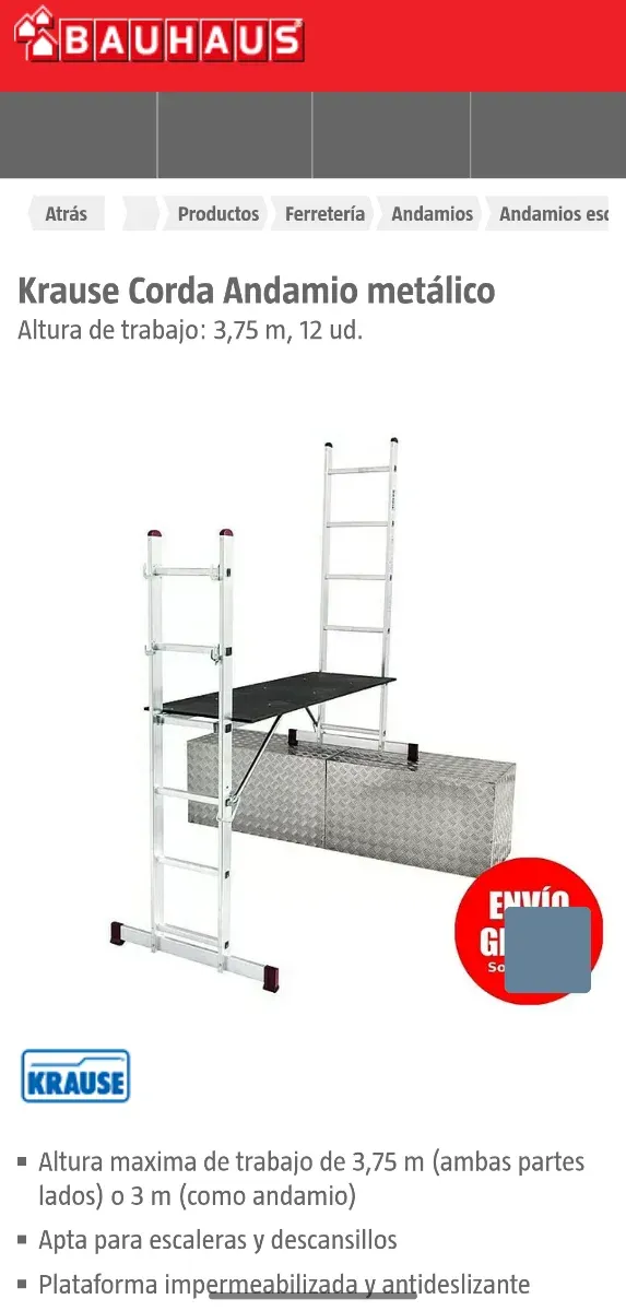 Detalles del productoAndamio metálico Krause Corda con una altura máxima de trabajo de 3,75 m.