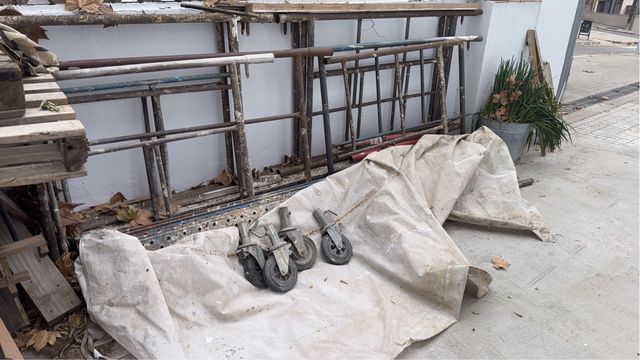 Detalles del productoAndamio completo con ruedas para facilitar su movilidad. Ideal para trabajos de construcción o mantenimiento.