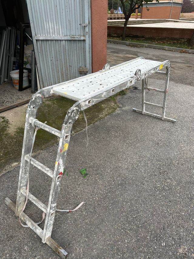 Andamio plegable tipo escalera, fácil de transportar y almacenar. - Estructura de aluminio. - Plataforma de trabajo.