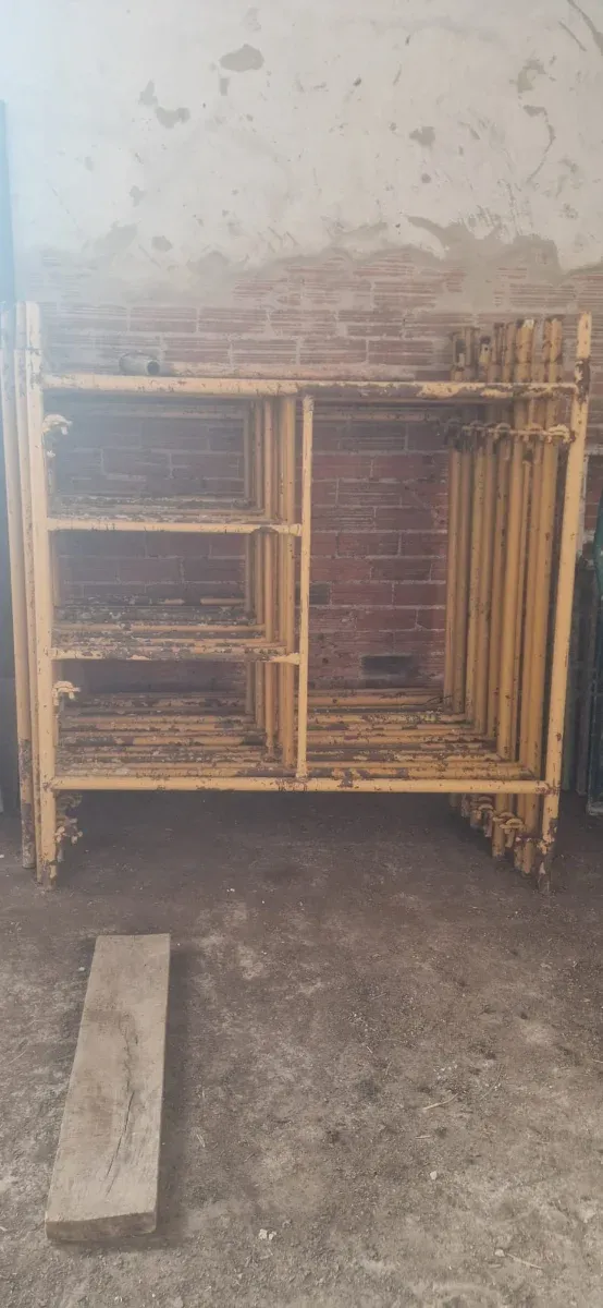 Detalles del productoAndamio tradicional de color amarillo, ideal para trabajos de construcción