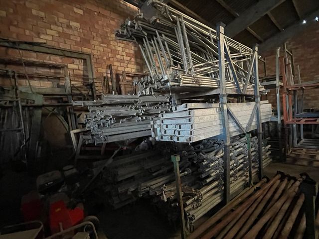 Sistema de andamio y montaje para construcción o eventos. - Estructura metálica robusta. - Componentes para montaje seguro. - Ideal para trabajos en altura.