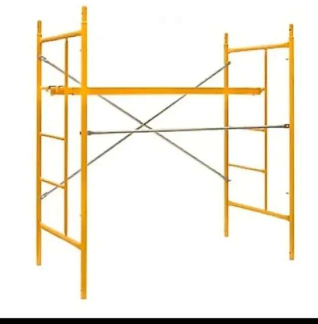 Estructura de andamios de color amarillo. - Marco de metal resistente. - Barras de soporte cruzadas. Dos patas ,tablón de chapa ,cruzeta , Varias unidades