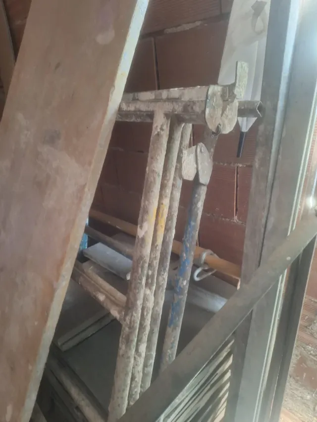 Se venden andamios de hierro junto con una tabla. - Estructura de andamios de hierro. - Tabla de madera.