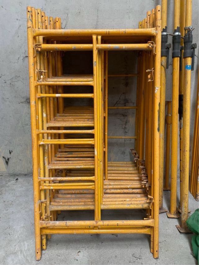 Detalles del productoSe venden andamios metálicos de color amarillo, con una tijera y una chapa