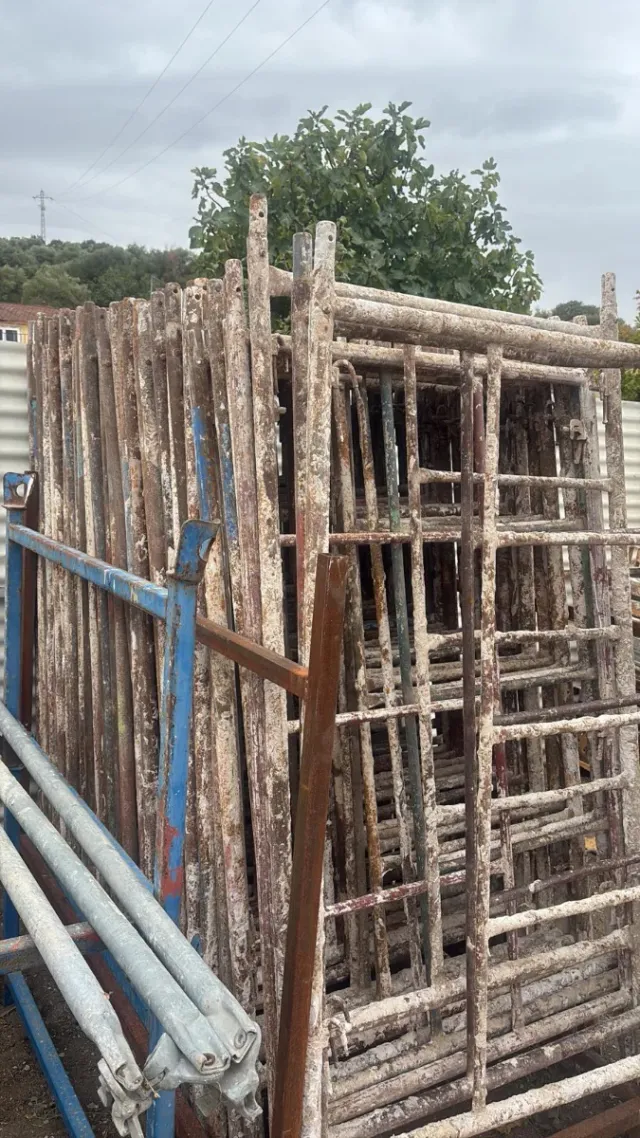 Detalles del productoConjunto de andamios metálicos, ideales para trabajos de construcción o reformas.