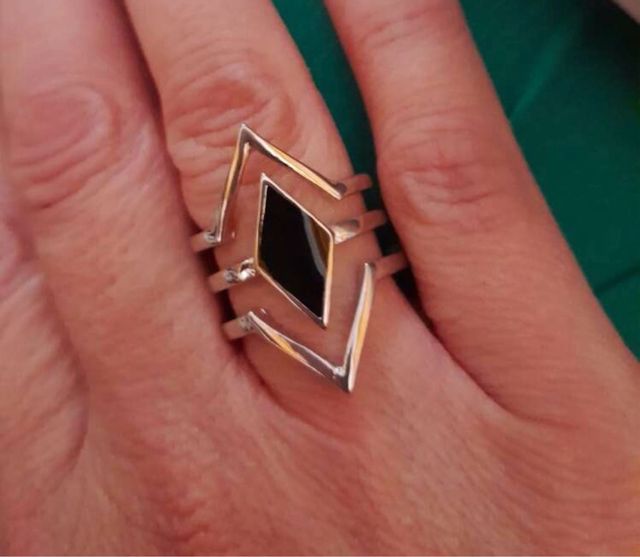 Anillo Acero Diseño Geométrico Negro