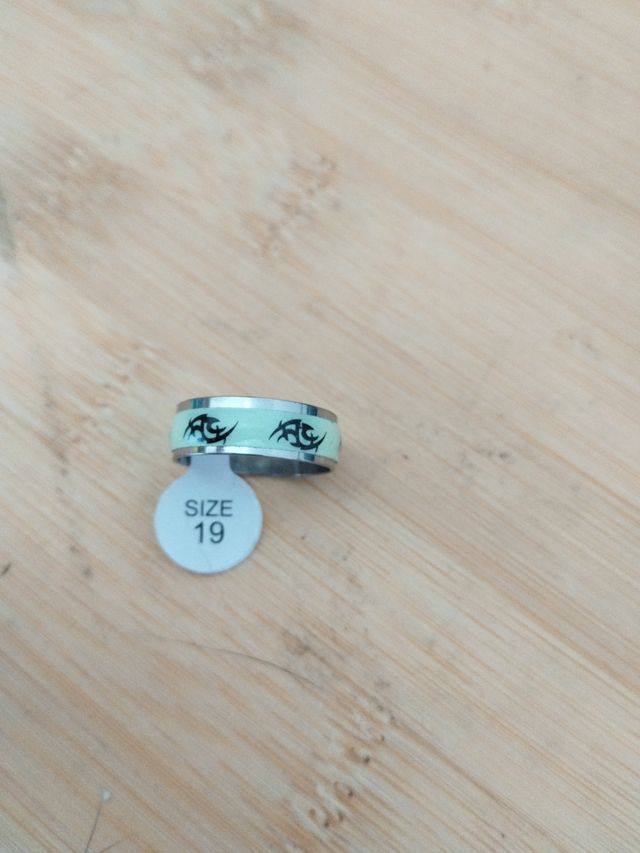 Anillo acero inoxidable con tira amarillo fluorescente dibujo tribal