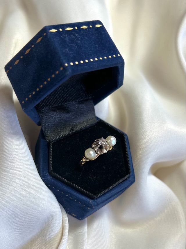 Anillo Antiguo Oro 18k Brillante y Perlas
