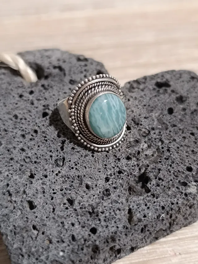 Anillo artesanal de plata y piedra amazonita