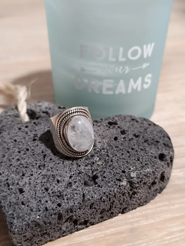 Anillo artesanal de plata y piedra luna