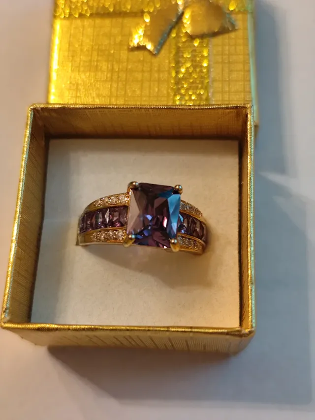 - Centro con una piedra principal grande de color morado.