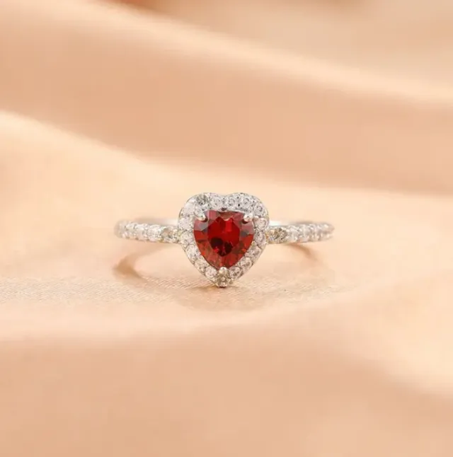 Anillo Corazón Rojo Plata