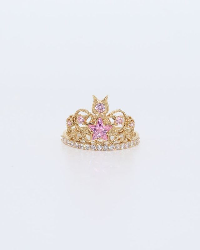 ANILLO CORONA CON CIRCONITAS ROSA 18K